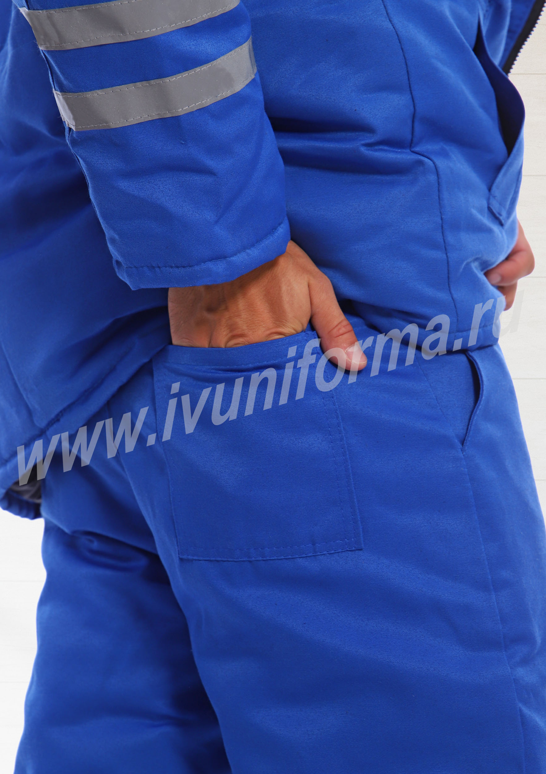 Брюки с высоким утепленным поясом, со шлевками под ремень, застежкой на две пуговицы и молнию. По низу брюк расположены две светоотражающие ленты. Утепление брюк 200 гр/кв.м.